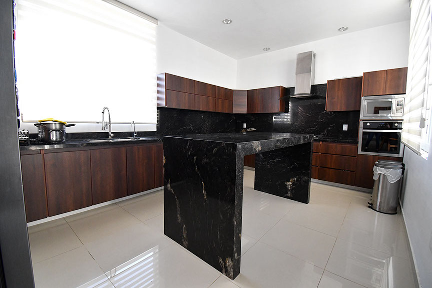 - Cocina con granito e isla, con parrilla y campana, torre de calientes