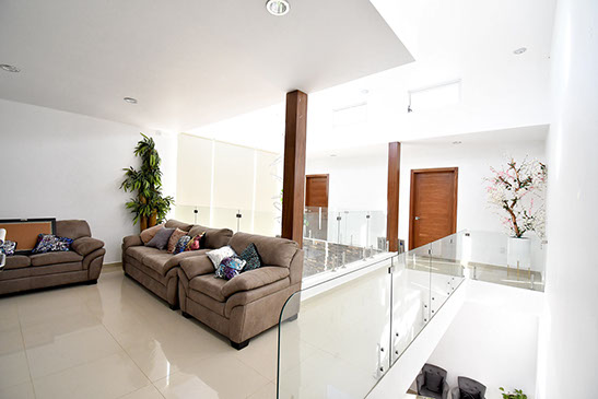 - Recamara con balcón con vista a la alberca, baño completo y vestidor Recamara 2 con balcón con vista al jardín, baño completo y vestidor Recamara 3 con balcón con vista a la calle, baño completo y vestidor