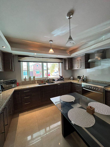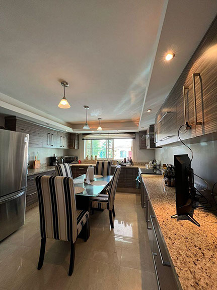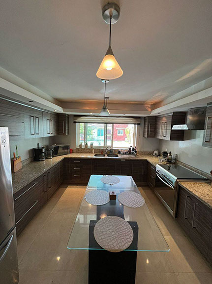 - Cocina con barra de granito, plafón, estufa y campana y una alacena de muy buen tamaño